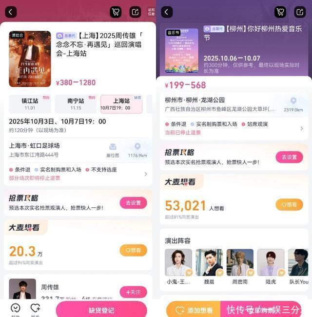说完电影,国庆期间各地的音乐节、演唱会也将轮番上演。像周传雄的《念念不忘》巡回演唱会,小刚老师这两年又火回来了,这次肯定能用声音唤起大家满满的回忆。近期值得冲的音乐节也不少,比如“你好柳州热爱音乐节”,小鬼王琳凯、陆虎、遗忘俱乐部、宝石Gem都会亮相,常去音乐节的小伙伴都知道,这阵容有多值!如果你还没定好计划,不妨多关注下这些活动的票务信息,早点下手还是能省不少麻烦。